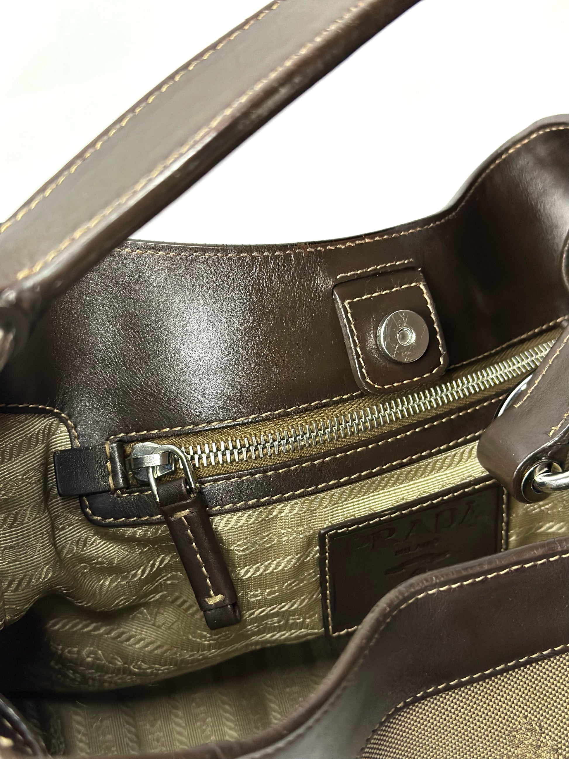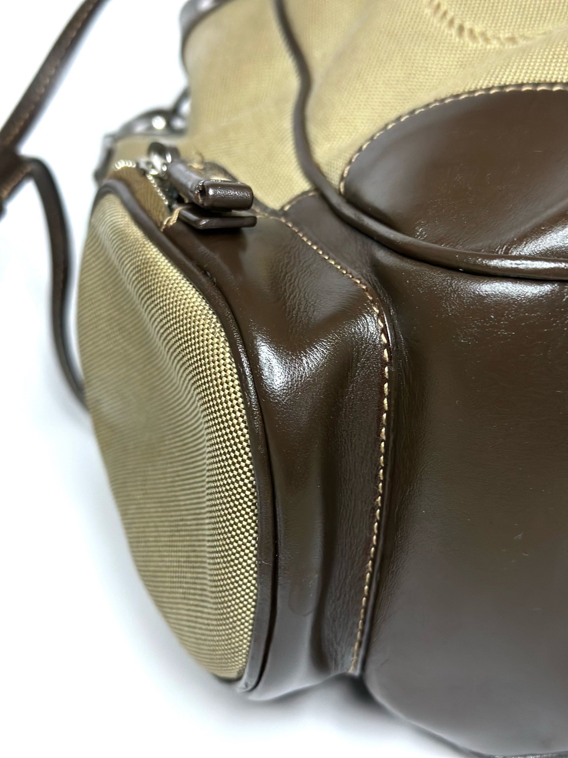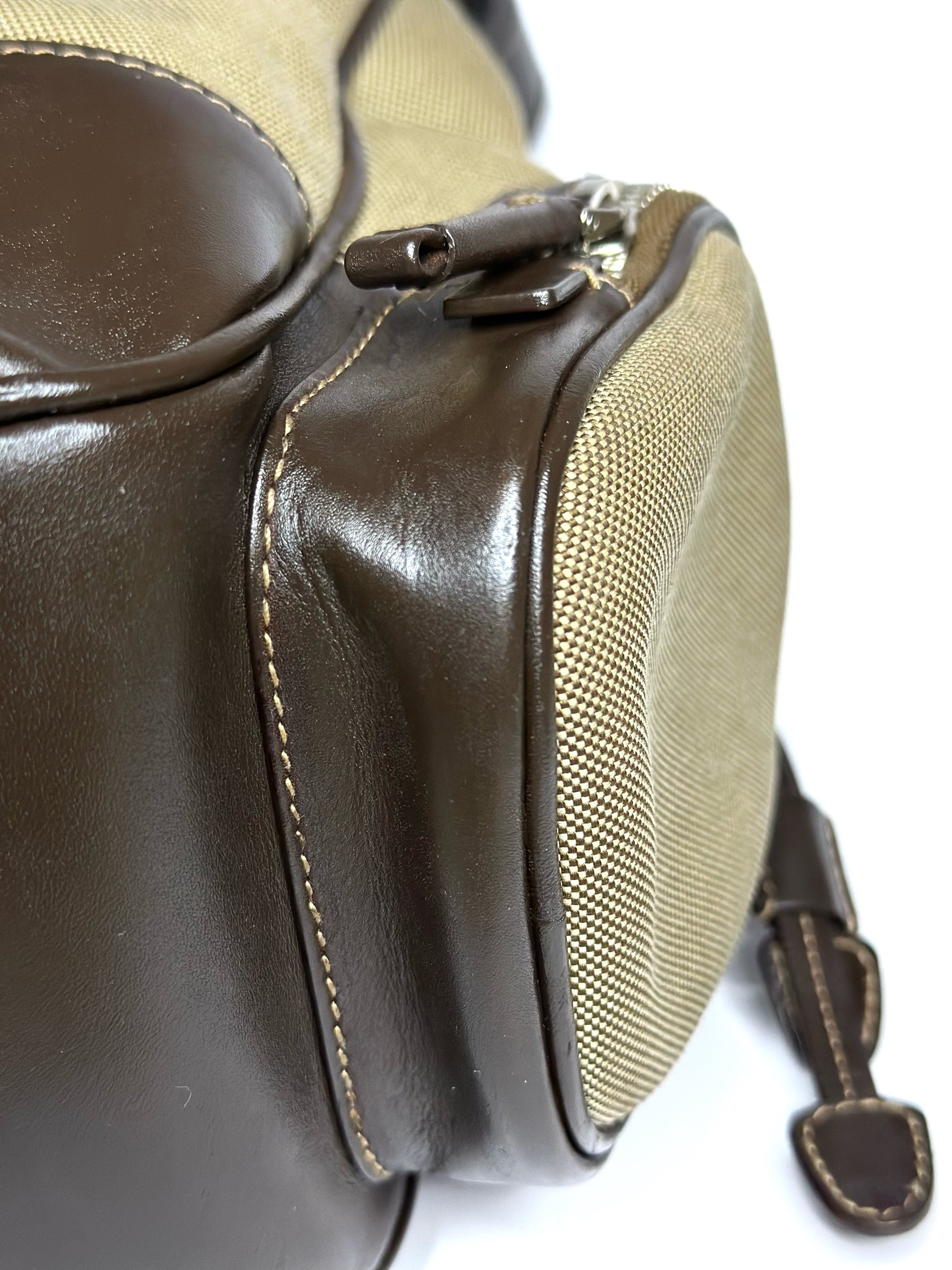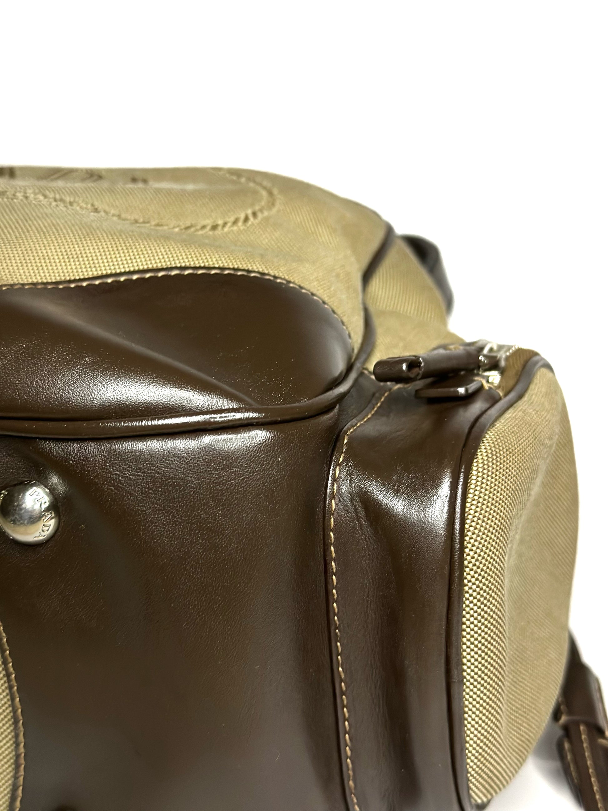 Elegant bag in canvas and leather, finished with refined details and designed for versatile everyday use.