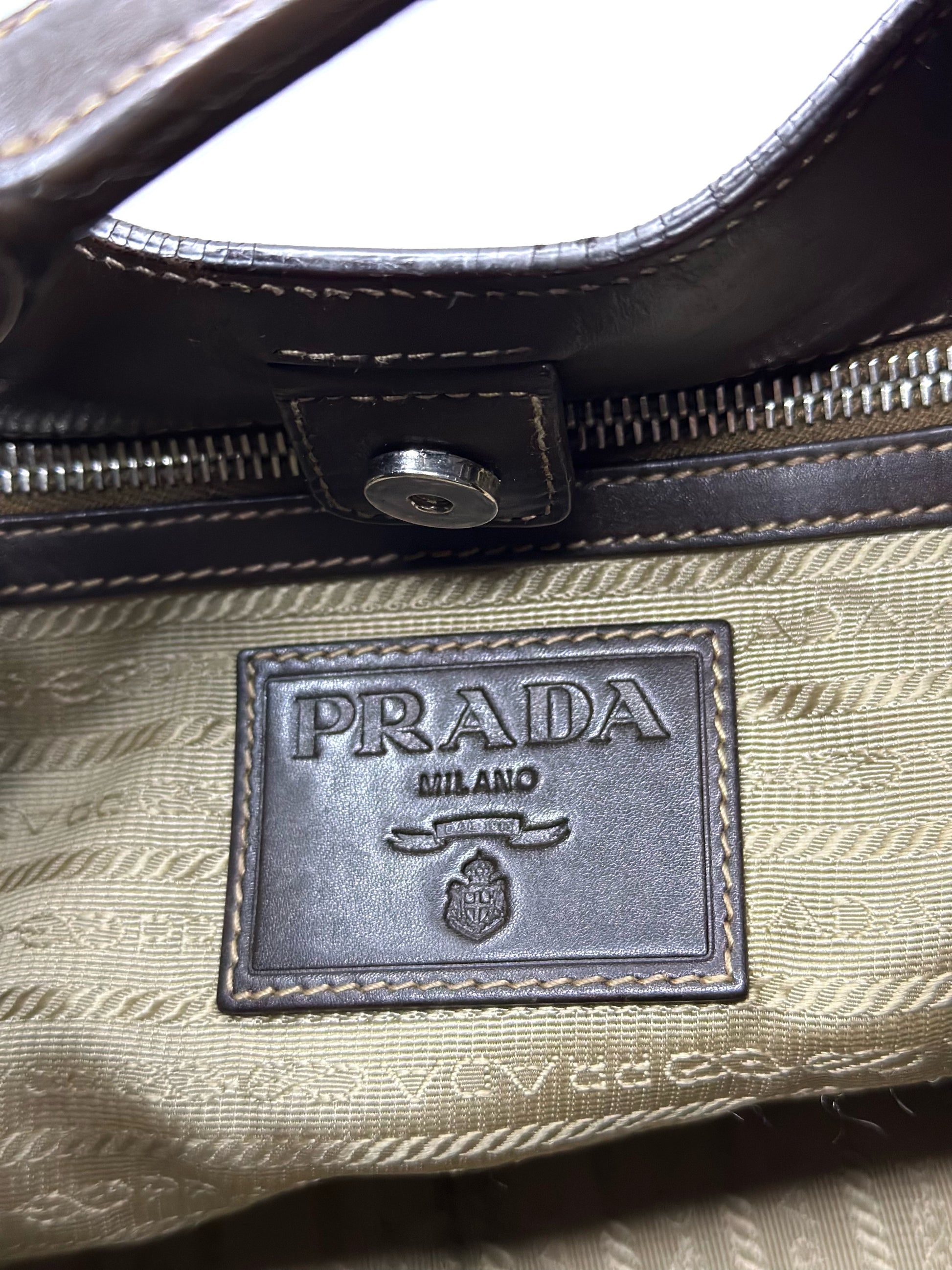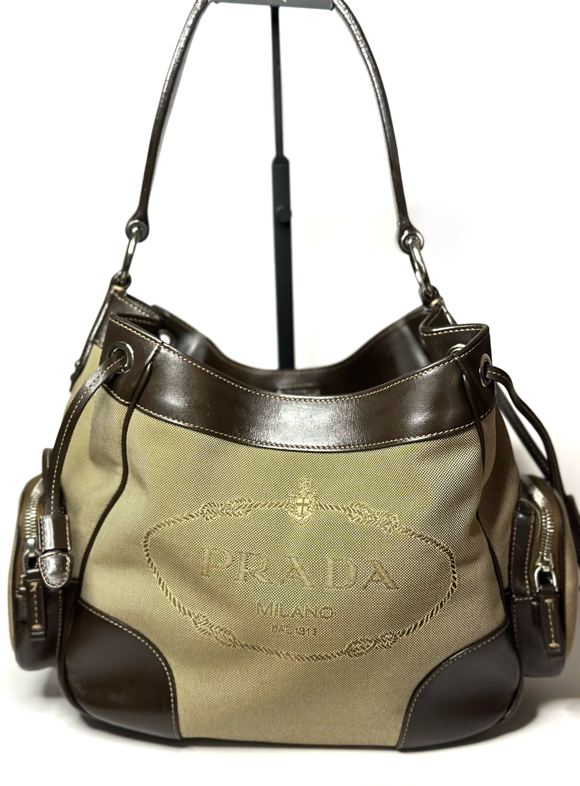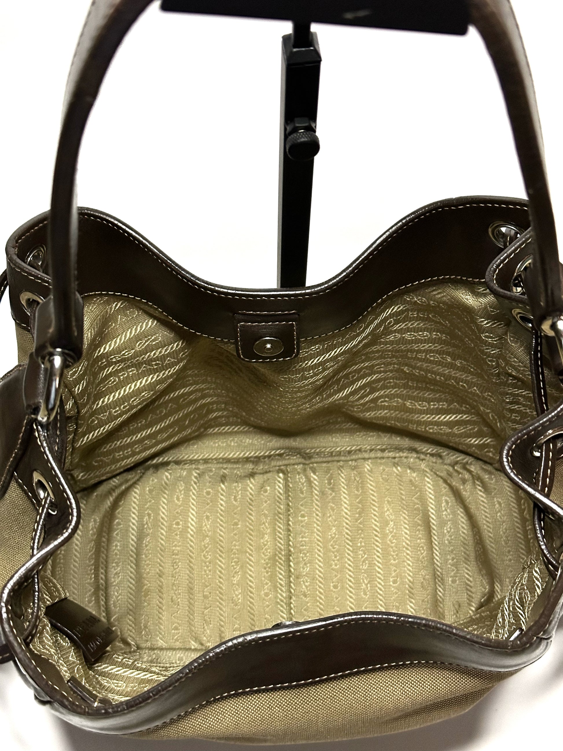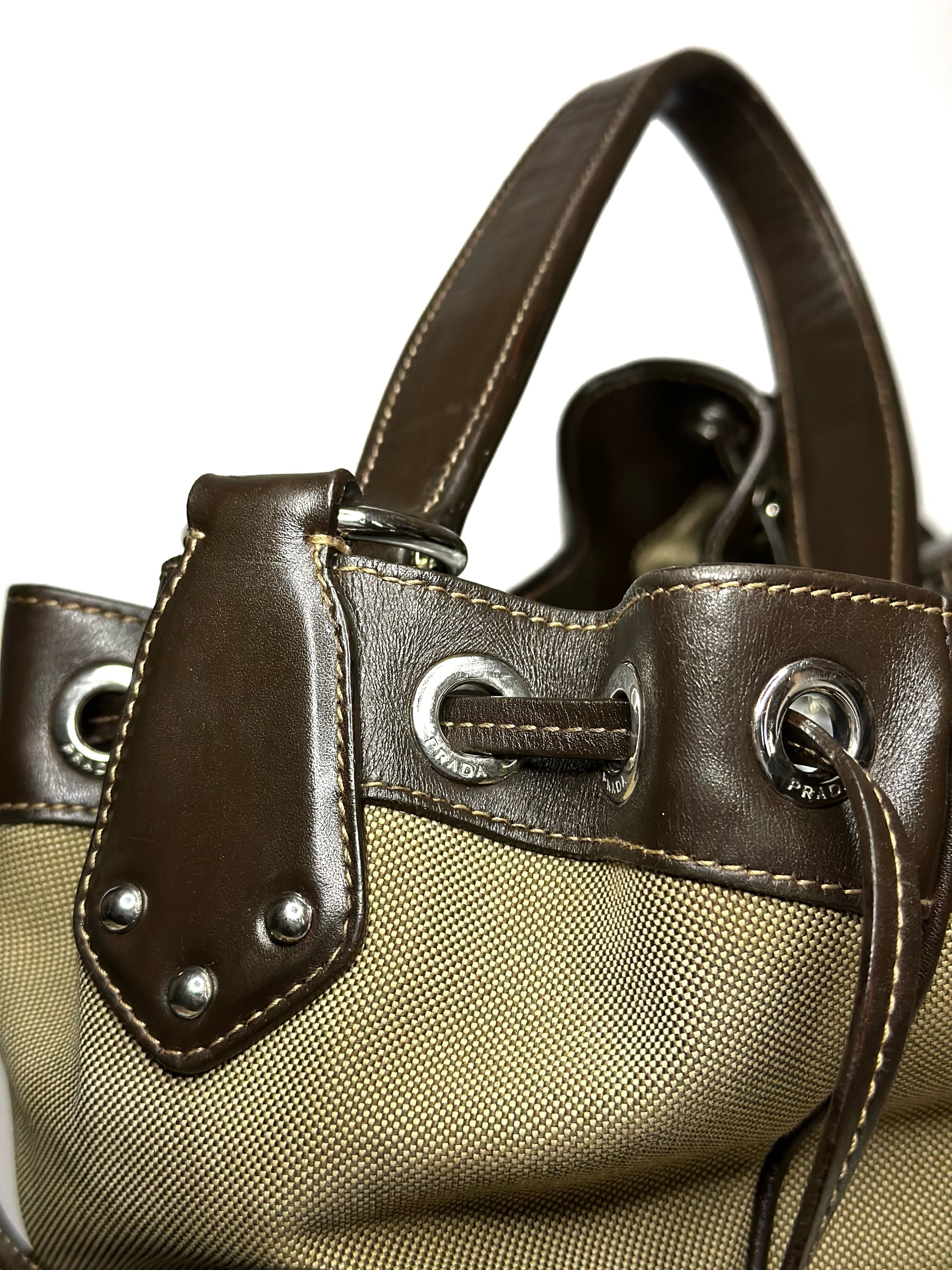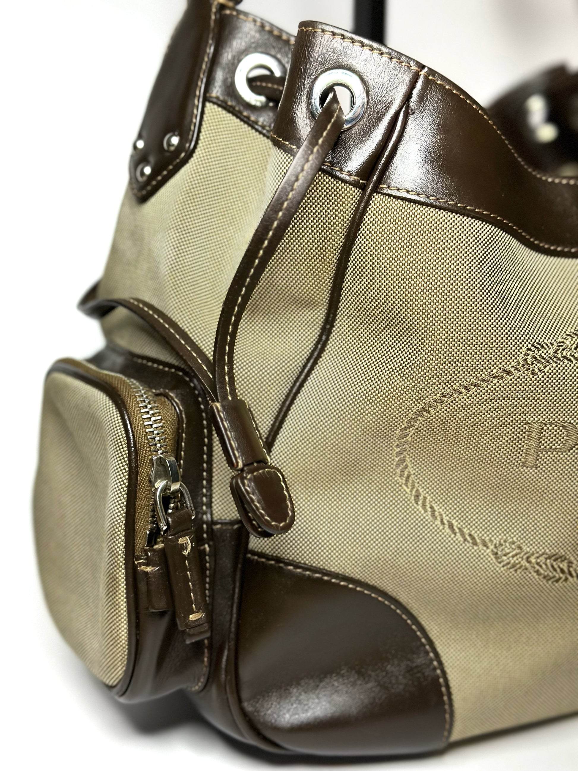 Elegant bag in canvas and leather, finished with refined details and designed for versatile everyday use.